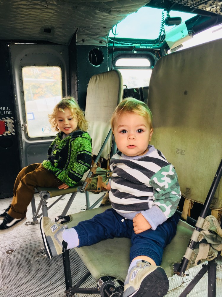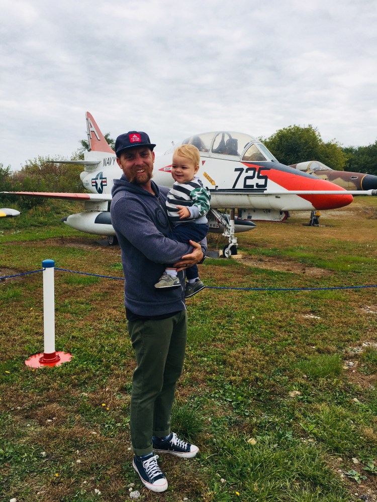 The boys were in heaven playing with the airplanes at the Air Classic Museum of Aviation.