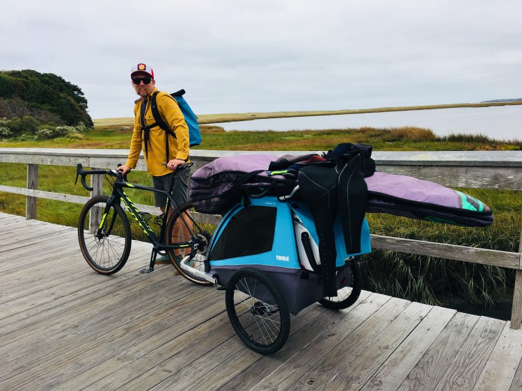 This is how we roll to the beach…. load everything on the bike trailer, stuff the kids in and ride! Chris is amazing for pulling the 150lbs trailer all around town and only complaining a little, when it’s uphill. Hahhaa!